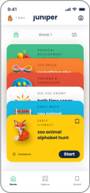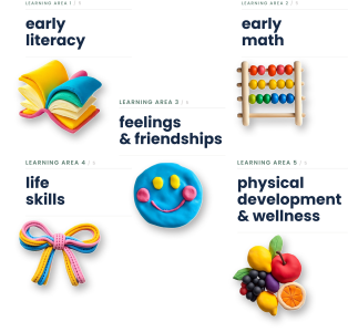 Juniper activities focus on whole child development including early-reading and early-math skills. In addition we help you support your child's development in other critical areas like Friendship & Feelings, Life Skills, and Physical Wellness. These additional skills are the ones that teachers report as the most important for success in school.